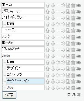 ナビゲーションの編集では、Homeやプロフィールなどの【ページ名】を変更する他にも、ページの【追加/削除】【階層の変更】【非表示】が行えます。設定が終われば【保存】をクリックするだけで簡単に編集できます。